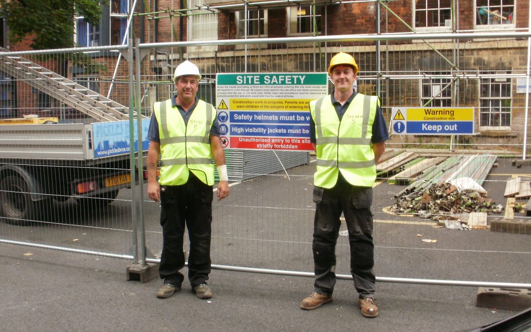 Steven Shaw – Site Manager (right hand side) and Steven Pearson – Site Foreman. Conducting Site Health & Safety Induction at Swarthmore Education Centre.