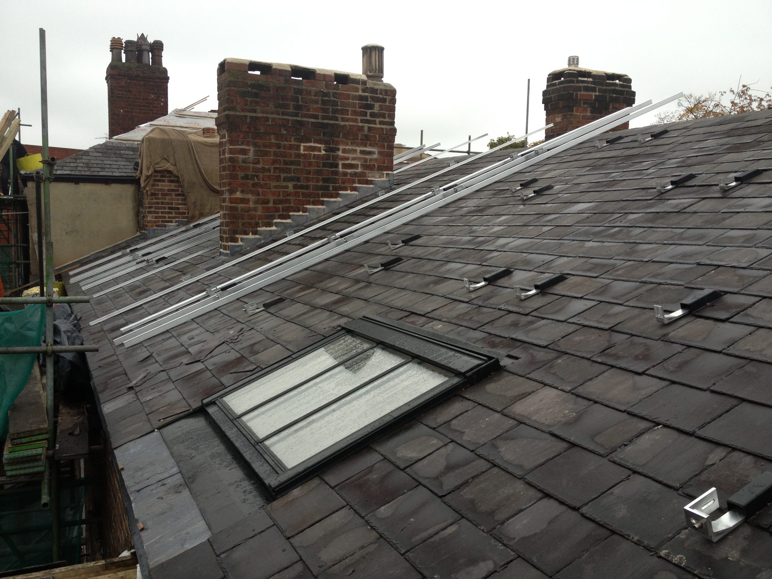 -Brackets installed to receive the rails for the solar (PV) photovoltaic system; working together with Duncan Renewables Plumbing, Heating & Electrics Limited. Solar (PV) Photovoltaic systems use the sun’s energy to create free, clean, no emissions electricity. The solar power generated feeds directly into your existing electricity system and is used in exactly the same way.